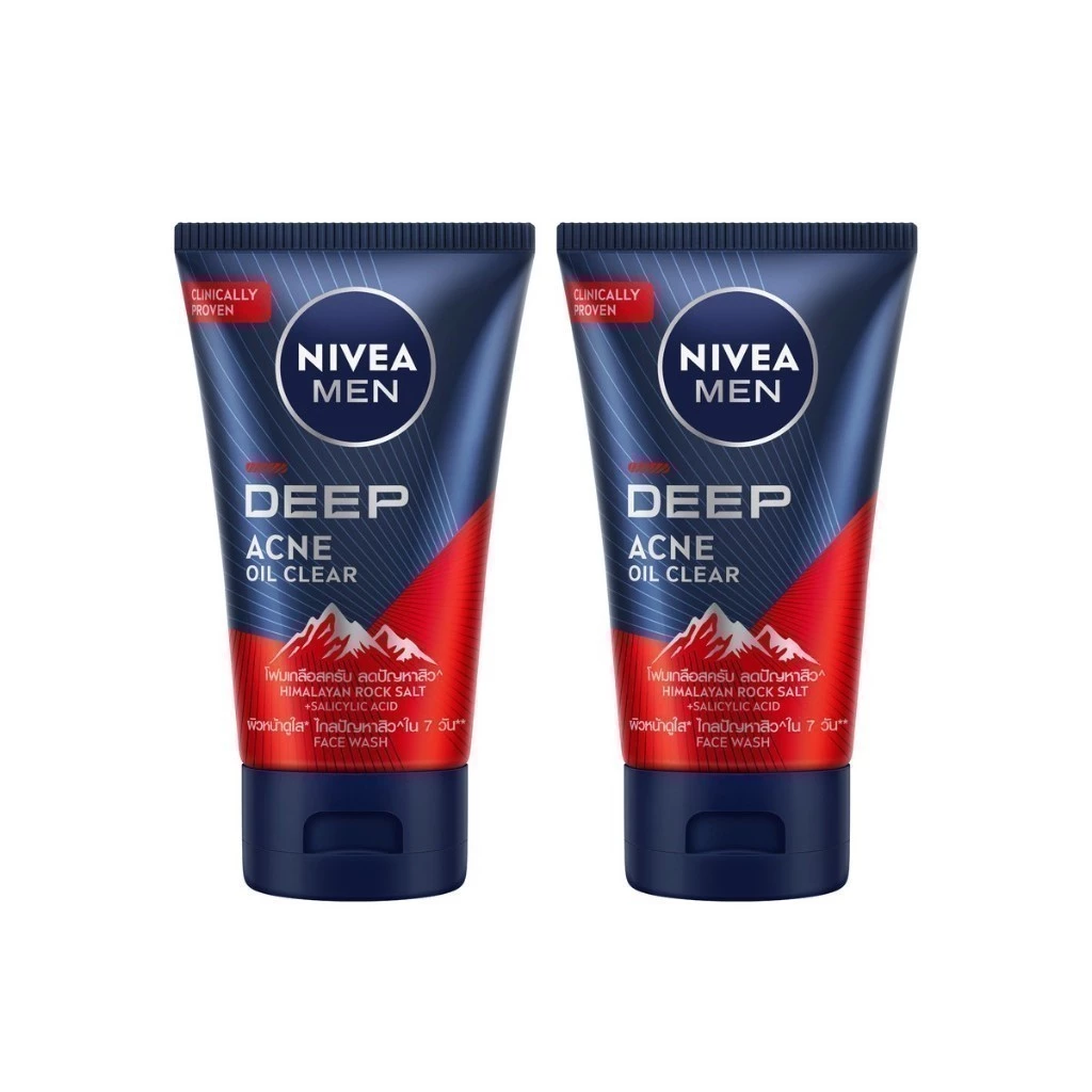 มาอีกตัวกับสายสครับ! Nivea Men Deep Acne Oil Clear ตัวนี้จัดเต็มเรื่องคุมมัน ลดสิวเหมือนกัน แต่เพิ่มความพิเศษด้วยเกลือหิมาลายัน! เม็ดสครับเค้าจะช่วยผลัดเซลล์ผิวเบาๆ ทำให้หน้าเนียนขึ้น บวกกับ Salicylic Acid ที่ช่วยเคลียร์สิวอุดตัน ลดแบคทีเรียที่ทำให้เกิดสิวใหม่ คือล้างแล้วรู้สึกสะอาดลึกจริงจังมาก กลิ่นก็หอมสดชื่นแบบผู้ชายๆ ใครหน้ามันเยิ้ม เป็นสิวง่าย ตัวนี้เอาอยู่แน่นอน