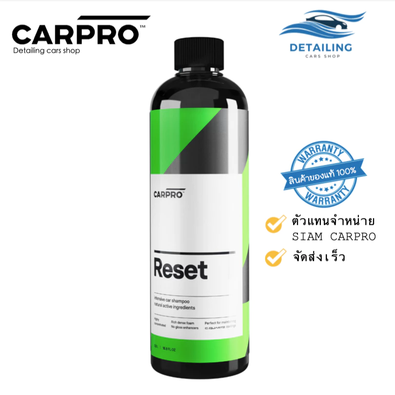 สายดูแลรถเคลือบเซรามิกหรือเคลือบแก้วต้องชอบตัวนี้ CARPRO Reset เป็นสูตรเข้มข้น ค่า pH เป็นกลาง ไม่ทำลายสารเคลือบเดิม ฟองเยอะ ลื่นมือ ล้างคราบฝังแน่นได้ดีมาก รถที่ลงเคลือบแก้วมาใช้ได้เลยไม่ต้องกลัวสีด่าง แถมช่วยป้องกันฝุ่นใหม่มาเกาะเร็วๆ ด้วย กลิ่นอ่อนๆ ไม่แรง ขวด 1 ลิตร ใช้ได้นาน คุ้มสุดสำหรับสายรักรถจริงจัง